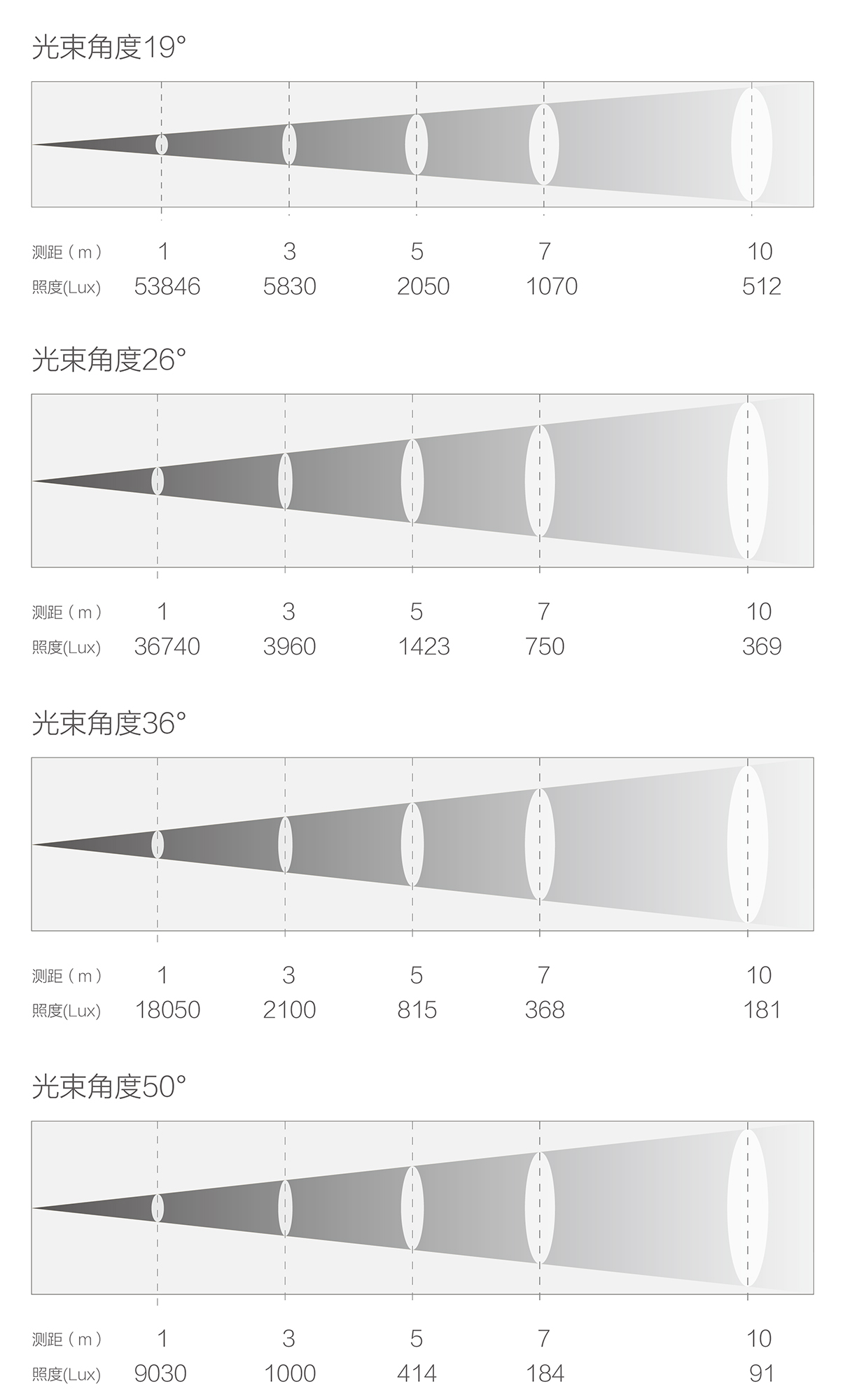 標配19°/26°/36°/50°可選