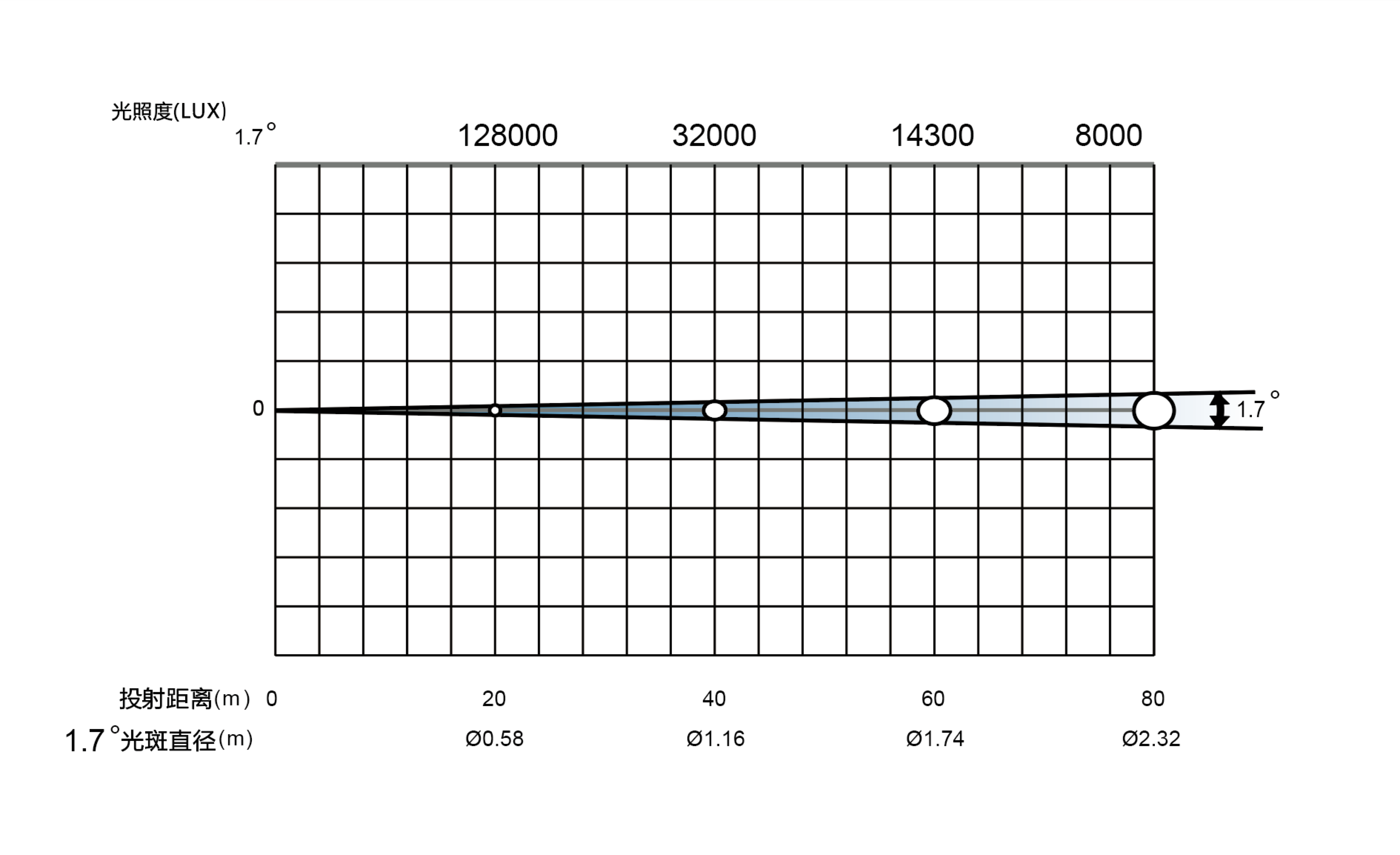BEAM模式光束角度0-1.7° |