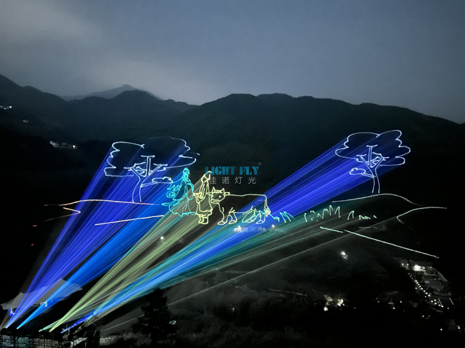 佳諾10臺60W全彩防水激光燈打造梯田山體雕刻投影激光秀
