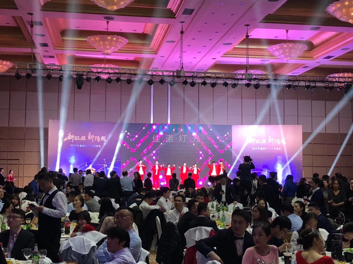 佳諾燈光LIGHT FLY為2019年跨越速運(yùn)提供高端款FLY-380B青龍款380W光束燈32臺,F(xiàn)LY-5403L 54顆3W染色LED帕燈64臺,F(xiàn)LY-300T影視LED成像燈16臺,F(xiàn)LY-2048C八路老虎控臺一臺等燈光控制臺設(shè)備,為此次年會演出提供絢麗燈光秀,佳諾燈光LIGHT FLY十二年專注.領(lǐng)先的舞臺燈光制造商!