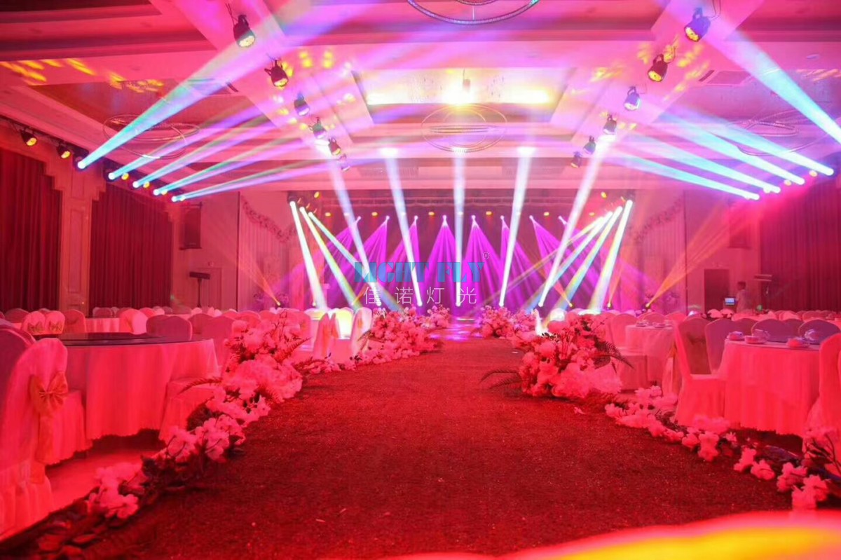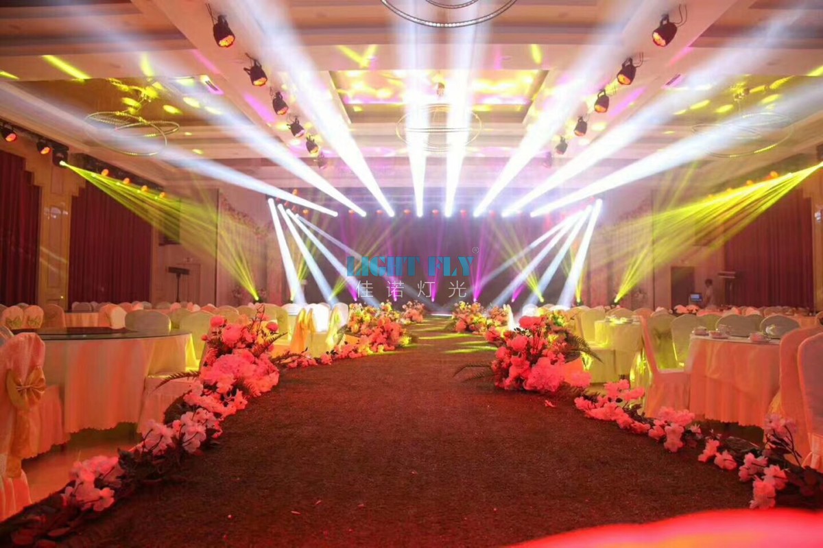 甘肅希爾頓酒店全部采用白色機(jī)箱舞臺(tái)燈光:佳諾燈光LIGHT FLY30臺(tái)350W超級(jí)光束燈,12臺(tái)350W光束圖案燈,64臺(tái)白54顆3W三合一LED帕燈,新款200W線性調(diào)焦面光燈等舞臺(tái)燈光.打造美輪美奐的婚慶演出燈光秀.佳諾燈光十二年專注.領(lǐng)先的舞臺(tái)燈光制造商。