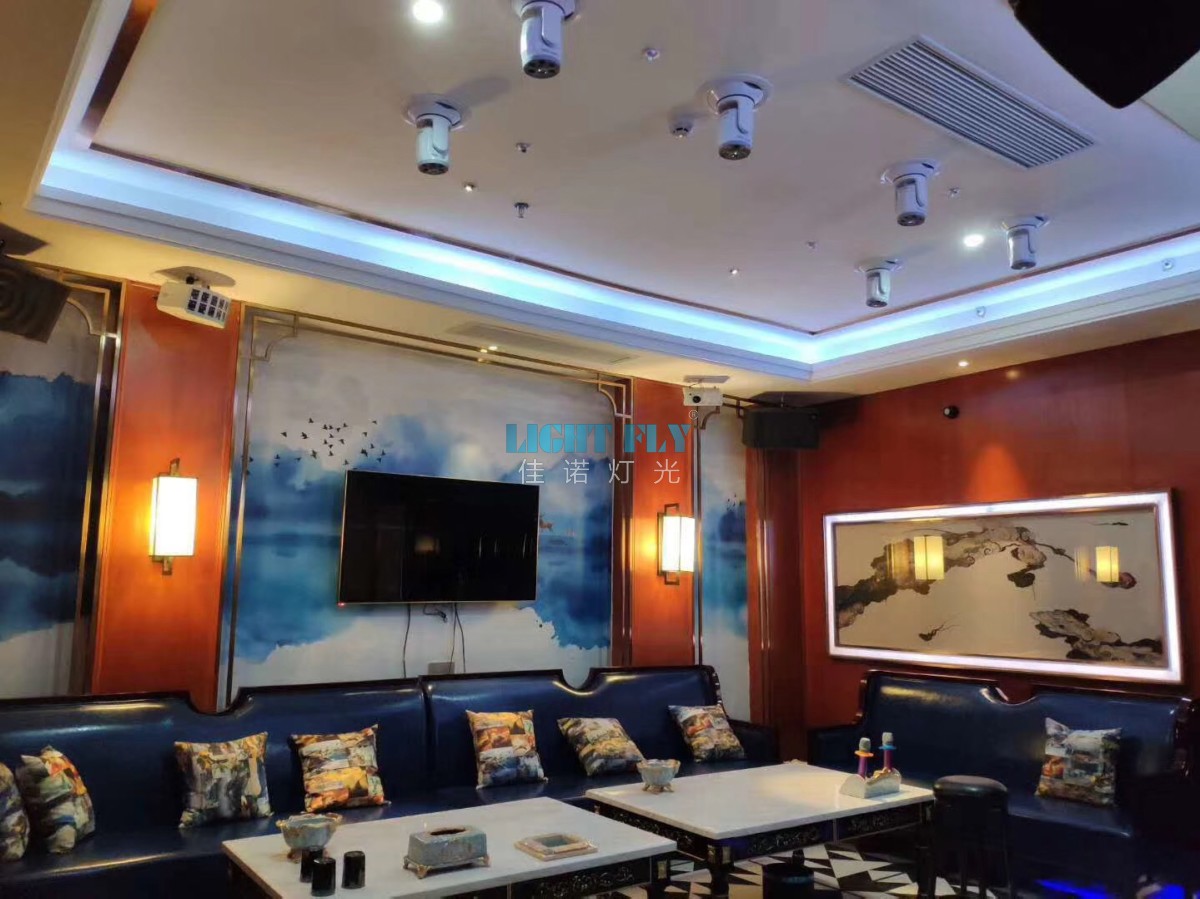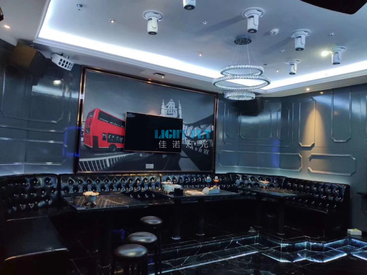 現(xiàn)以福建福州金寶麗智能KTV包房為例, KTV等娛樂空間通過運用“感官”和“觸覺”的魔術(shù)調(diào)動著人們的情緒,酒精、音樂、活躍的氣氛、眼花繚亂的燈光,給消費者帶來的特殊的溫暖感覺,眼中看到的一切,讓其中的每個人感覺自己是一個超級尊貴的王者,在視覺與欲念中放松自己?,F(xiàn)代KTV設(shè)計將時尚、浪漫、豪華等特色表現(xiàn)得淋漓盡致。在KTV設(shè)計中最為重要的也是最為基礎(chǔ)的就是照明設(shè)計,通過燈光設(shè)計來凸顯環(huán)境的氣質(zhì),已經(jīng)成為大多數(shù)KTV等娛樂場所的裝修亮點。