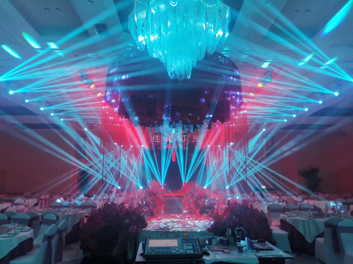 佳諾燈光LIGHT FLY參與了全部宴會廳燈光的設(shè)計.安裝.調(diào)試,七彩的光束燈光效果,震撼的燈光秀,主要參與的產(chǎn)品:青龍款FLY-380B 380W光束燈,F(xiàn)LY-1810L 18顆10W四合一LED帕燈,F(xiàn)LY-200L 暖白LED面光燈,F(xiàn)LY-2048C 觸摸八路老虎控制臺等燈光控制臺設(shè)備,廣州佳諾燈光設(shè)備有限公司是一家十二年從事智能化演藝燈光研發(fā)、生產(chǎn)、銷售、服務(wù)于一體的國家高新技術(shù)企業(yè)。其自主品牌【佳諾燈光LIGHT FLY】產(chǎn)品涵蓋專業(yè)舞臺燈光、LED演藝照明,文旅亮化等領(lǐng)域,廣泛應(yīng)用于劇院、體育場館、電視臺及各種演出場所。