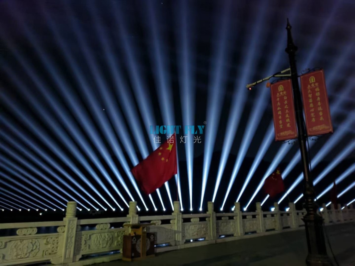 巍巍漢山,雄踞漢水之南,父親一樣博大雄渾、深邃遼遠(yuǎn)。憑借漢山豐富的自然、人文資源,如果能進(jìn)行整體開(kāi)發(fā),這塊寶地定會(huì)再現(xiàn)遠(yuǎn)古的輝煌燦爛。佳諾燈光LIGHT FLY為漢山風(fēng)景區(qū)的夜晚點(diǎn)亮美輪美奐的光束燈光秀,采用了80臺(tái)380W防水光束燈,全部安裝在景區(qū)的河水橋旁邊,通過(guò)智能控制臺(tái)給景區(qū)夜晚打造一場(chǎng)震撼的燈光秀,游客紛紛拍照留念,廣州佳諾燈光設(shè)備有限公司是一家十二年從事智能化演藝燈光研發(fā)、生產(chǎn)、銷(xiāo)售、服務(wù)于一體的國(guó)家高新技術(shù)企業(yè)。其自主品牌【佳諾燈光LIGHT FLY】產(chǎn)品涵蓋專業(yè)舞臺(tái)燈光、LED演藝照明,文旅亮化等領(lǐng)域,廣泛應(yīng)用于劇院、體育場(chǎng)館、電視臺(tái)及各種演出場(chǎng)所。