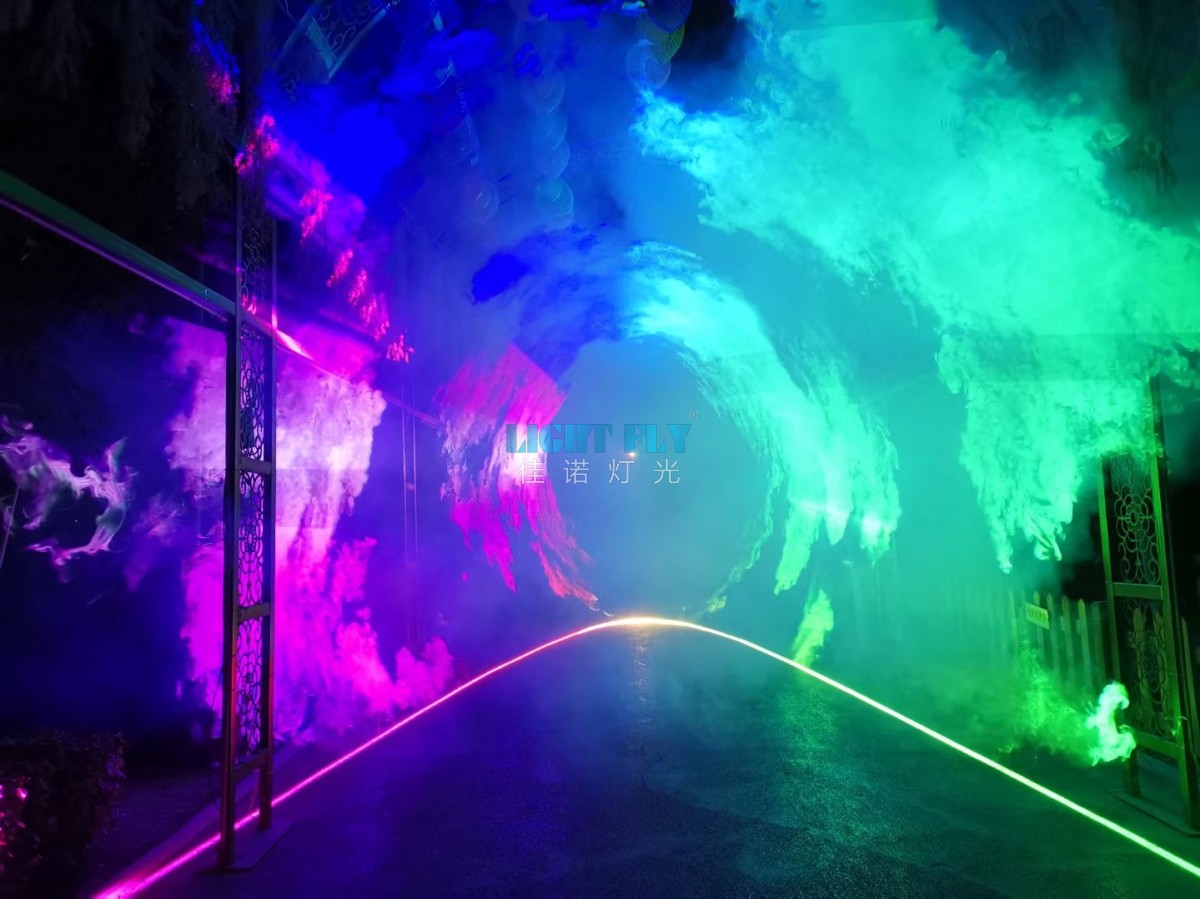 醉仙居打造夜晚的文旅燈光秀,采用了6臺(tái)佳諾燈光30W全彩動(dòng)畫激光燈,通過進(jìn)口FB3穿山甲軟件打造了美輪美奐的時(shí)空隧道激光秀,讓游客仿佛置身北極之光,紛紛拿出手機(jī)拍照攝影,分享著絢麗的時(shí)光,廣州佳諾燈光設(shè)備有限公司是一家十二年從事智能化演藝燈光研發(fā)、生產(chǎn)、銷售、服務(wù)于一體的國家高新技術(shù)企業(yè)。其自主品牌【佳諾燈光LIGHT FLY】產(chǎn)品涵蓋專業(yè)舞臺(tái)燈光、LED演藝照明,文旅亮化等領(lǐng)域,廣泛應(yīng)用于劇院、體育場(chǎng)館、電視臺(tái)及各種演出場(chǎng)所。