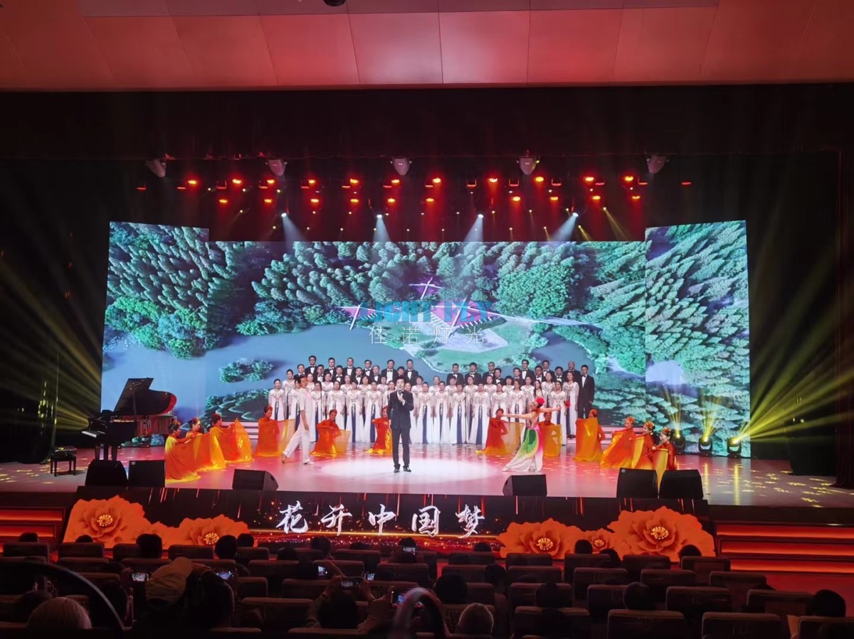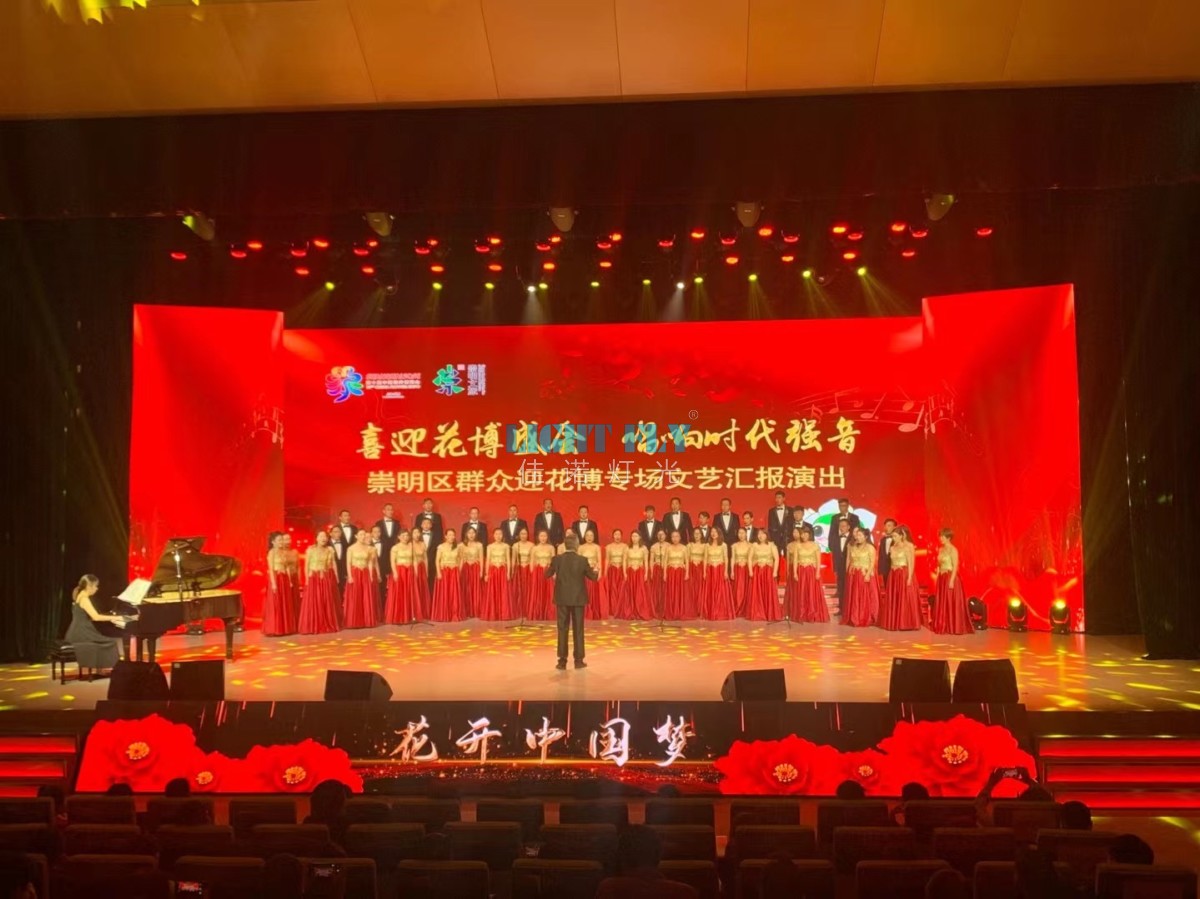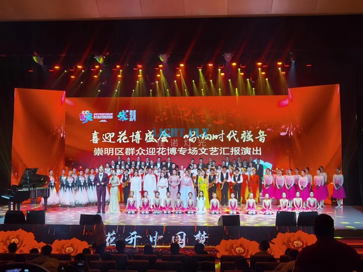 為喜迎花博盛會,唱響時(shí)代強(qiáng)音,上海崇明劇院舉辦了花開中國夢表演節(jié)目,整個(gè)劇院燈光舞臺由佳諾燈光LIGHT FLY燈光設(shè)計(jì)部設(shè)計(jì),采用了32臺FLY-380B 380W光束燈,80臺FLY-2410L 24顆10W四合一LED染色帕燈,20臺FLY-300T 300W影視LED成像燈作為劇院面光燈,16臺 FLY-380BSW 380W光束圖案燈打造舞臺圖案效果,1臺MA2控制臺打造整場劇場燈光秀,絢麗多姿的燈光秀寓意花博會圓滿舉行,得到了觀眾領(lǐng)導(dǎo)們的一致滿意。