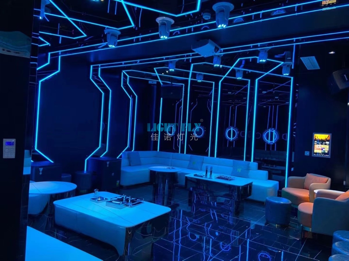唱歌是現(xiàn)在大部分人放松的方式,傳統(tǒng)的手機(jī)聽歌,自己唱歌很單調(diào),很多人喜歡將朋友聚集在一起去KTV唱歌,這是很好的釋放壓力的方式,各種各樣的歌曲,能夠讓所有人都能選到自己喜歡的歌曲,佳諾燈光LIGHT FLY燈光設(shè)計(jì)師結(jié)合2021年輕人的夜晚生活習(xí)慣,采用的柔和的KTV智能包房燈光系列:嵌入式LED搖頭圖案燈,嵌入式LED染色搖頭燈,嵌入式動(dòng)畫激光燈,嵌入式LED蝴蝶燈,嵌入式LED水紋燈等燈光設(shè)備,全部采用一鍵式觸摸屏KTV燈光系統(tǒng),可以切換柔光燈光效果,爆閃燈光效果,動(dòng)畫激激光效果,讓每一位來(lái)KTV的客戶感受夜晚的多姿多彩。無(wú)與倫比的燈光秀得到了客戶的一致滿意。
