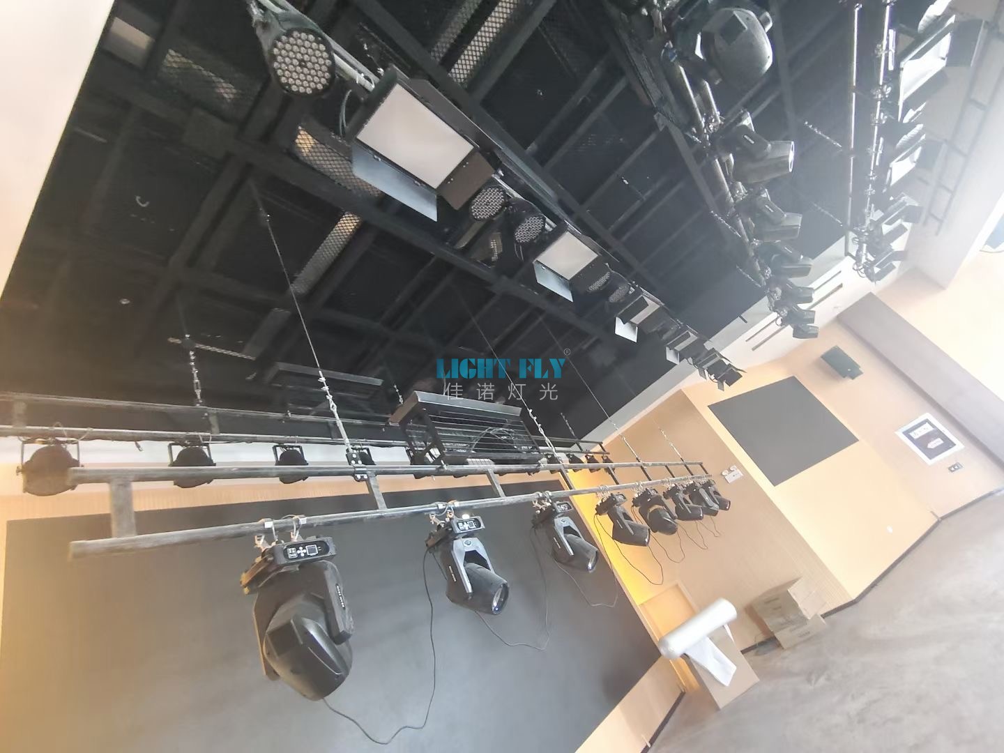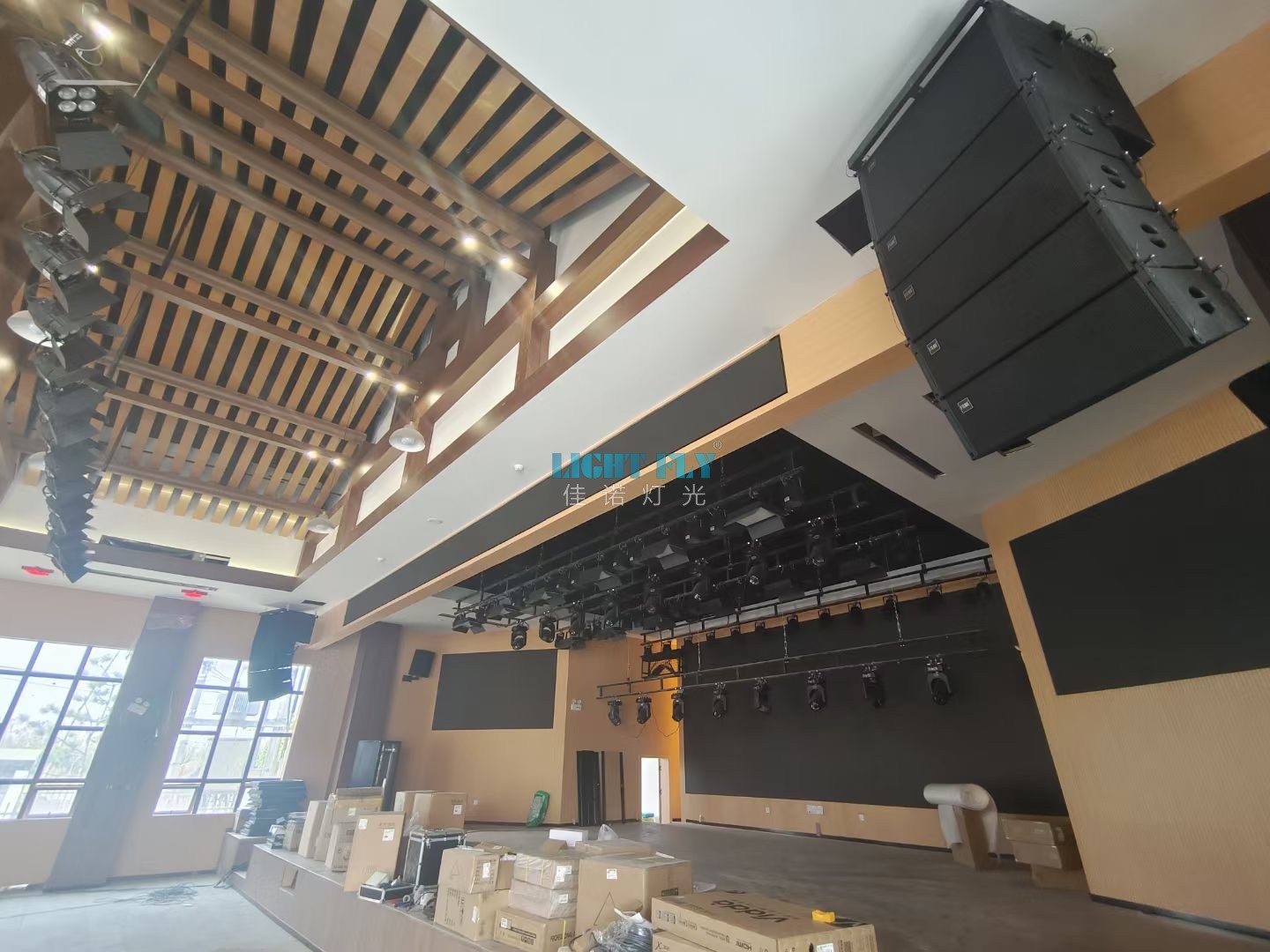 2023年一月份整個文化園多功能會議室升級改造,燈光,音響,顯示屏等全面升級,佳諾燈光LIGHT FLY主要設計了多功能會議室舞臺燈光,采用了380W光束燈24臺,LED染色帕燈60臺,LED三基色會議燈32臺,LED面光燈20臺,煙霧機兩臺等燈光控制臺設備,集合了會議室燈光功能,演出表演燈光功能,絢麗的燈光秀得到了領導們一致滿意,廣州佳諾燈光設備有限公司是一家十五年從事智能化演藝燈光研發(fā)、生產(chǎn)、銷售、服務于一體的國家高新技術企業(yè)。其自主品牌【佳諾燈光LIGHT FLY】產(chǎn)品涵蓋專業(yè)舞臺燈光、LED演藝照明,文旅亮化等領域,廣泛應用于劇院、體育場館、電視臺及各種演出場所。